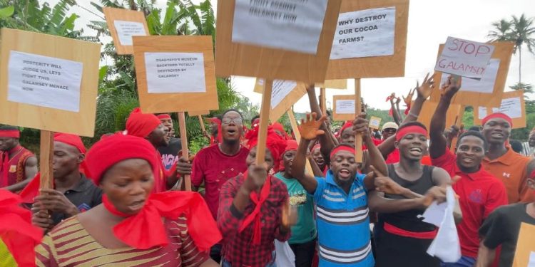 In an interview with Citi News, Grace Amihere, a resident of Ellembelle said, “I’m demonstrating because of the pollution of our water and destruction of cocoa farms. How are we going to feed our children with the destruction of our farms? The operators suddenly came without prior notice to us.