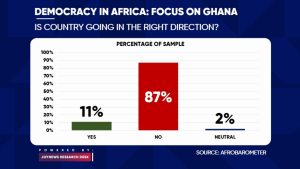 Latest democracy risk report by Afrobarometer has indicated that 87% representing (almost) 9 in every 10 Ghanaians believe the country is heading in the wrong direction.