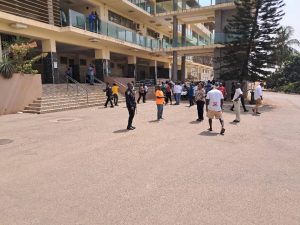 The staff who were seen jubilating also insisted they would not allow their Boss to leave with packs of bottled water from his office since they were bought with NSA funds.