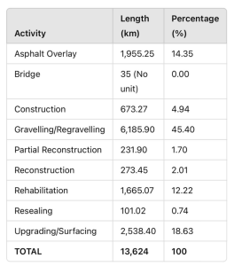 He also highlighted the completion of approximately 6,000 kilometres of gravel roads, which he said were essential in rural areas to connect communities and improve accessibility.