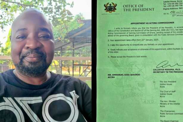 Mr. Quainoo’s appointment letter, dated January 22nd, 2025, and signed by the Secretary to the President, Callistus Mahama, Ph.D., conveyed the President’s best wishes.