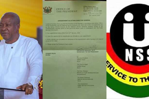 President John Dramani Mahama has appointed Gyamfi Felix as the acting Director-General of the National Service Authority, effective January 22, 2025.