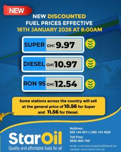 The reduction marks the second fuel price drop in January 2026, following favourable developments on the international petroleum market and the continued appreciation of the Ghana cedi against major trading currencies.